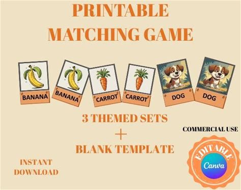 Editable Matching Game Canva Template, Printable Memory Cards, Commercial Use (Digital Download)