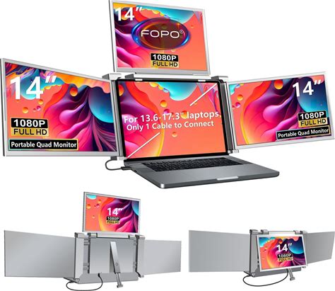 14'' 1080P Portable Dual Monitor Laptop Triple Screen Extender Plug