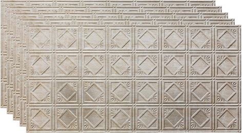 Fasade Traditional Pattern/Style 5 Decorative Vinyl 2ft X 4ft Glue Up Ceiling Tile In Argent Silver (5 Pack)