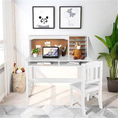 COSTARS Kids Desk And Chair Set, Kids Study Desk With Hutch For 5-12 Years Old, Student Writing Table Computer Workstation - White