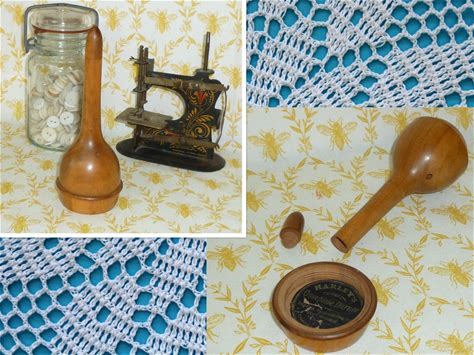 Unique Antique Sewing Kit Darning Egg Primitive Walnut Wooden Sock Darner Vintage Americana Sewing Tool