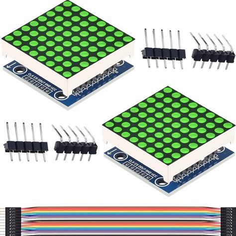 DAOKAI Dot Matrix Module 8X8 Dot Matrix LED Display Single Green Light MCU Control Driver Board With Cable For Arduino Microcontroller(2Pcs)