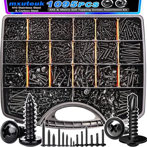 Mxuteuk 1095PCS Self Tapping Screws For Metal, 810 410 Stainless Steel Truss Head Self Drilling Screws And M2 M3 M4 Carbon Steel Phillips Pan Head