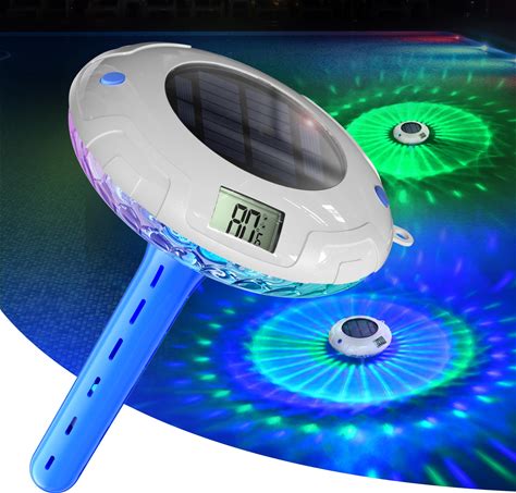Poolprime Pool Thermometer Easy To Read, Solar Pool Light With 8 RGBW Color Modes, Dual Dightal Displays For Inground Above Ground Pools (Deepblue)