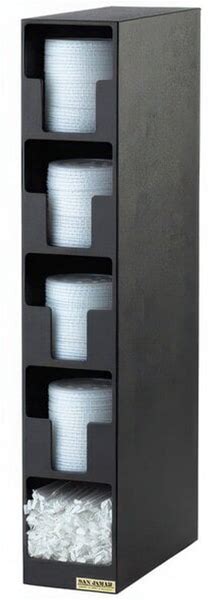 San Jamar L2204 Black 4-Compartment Vertical Countertop Lid Organizer With Straw Bin