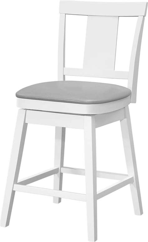 Set Of 2 Swivel Bar Stools, Counter Height With Grey Leather Look And White Wood, Perfect For Kitchen And Transitional Spaces