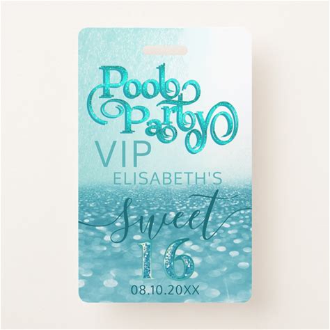 Fun Glitter Script Pool Party Sweet 16 VIP Badge