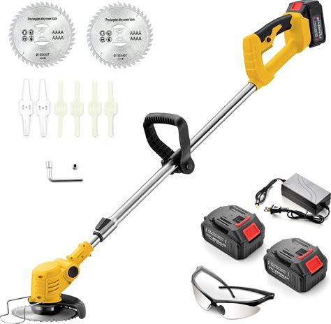 Gas Powered Weed Eater, 35.88Cc 4-Stroke Cordless Lawn Edger Gas String Trimmer With Two Blade Heads, Trimmer Power Gasoline Chainsaw For Home Lawn Mowe, Orchard Mowing, Tea Garden Mowing