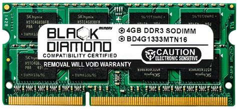 Black Diamond 4GB PC3-10600 DDR3-1333Mhz Non-ECC Unbuffered CL9 204-Pin Sodimm Dual Rank Memory Module Mfr P/N BD4G1333MTN16