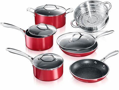 Granitestone Granite Stone Red Cookware Sets Nonstick Pots And Pans Set- 10Pc Kitchen Cookware Sets |Cookware Pots And Pans For Cooking Pan Set Diamond Cookware Set Non Sticking Pan Set