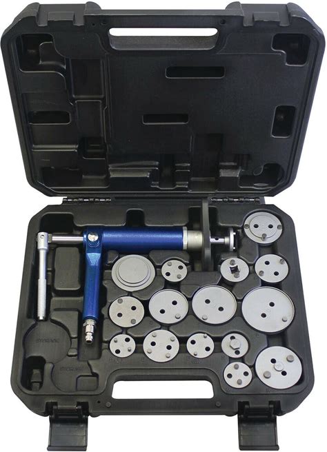 ARES 18024-16-Piece Brake Caliper Wind Back Tool Set - Pneumatic Design For Easy One-Person Use - Includes Compressor Tool, 15 Drive Key Disc Adapters - Storage Case Included