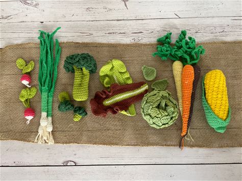 CROCHET PATTERN Vegetable Bundle 7-In-1 | Amigurumi Veggies Green Onion, Artichoke, Corn, Lettuce, Carrots, Radish, Broccoli Eco-Friendly