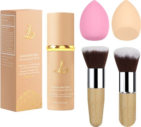 Match Foundation 4-In-1 With SPF 50 : Color Changing Foundation Medium Spectrum With 2 Brushes And 2 Cosmetics Sponge - Moisturizing & Concealer Face