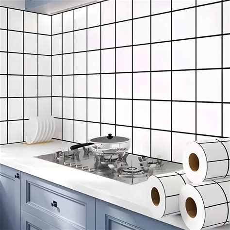 Glossy PVC/Vinyl Rectangle Grid Peel & Stick Kitchen Backsplash Tile With Heat & Water Resistance - White 19.4 Sq Ft. - 1 Piece