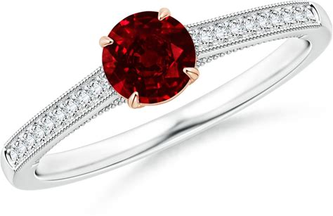 Angara 0.6 Carat Vintage Inspired Claw-Set Round Ruby Solitaire Ring In 14K White & Rose Gold