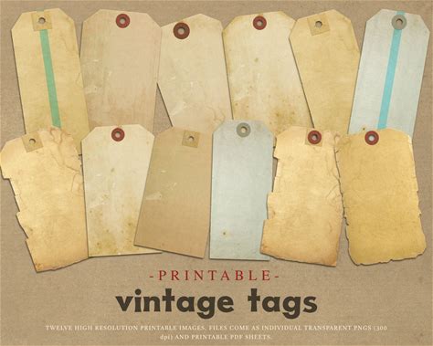 Printable Vintage Tags, Blank, Plain, Junk Journaling, Shabby, Vintage, Aged, Retro, Tags, Png, Pdf, Digital Tags, Luggage Tags, DOWNLOAD