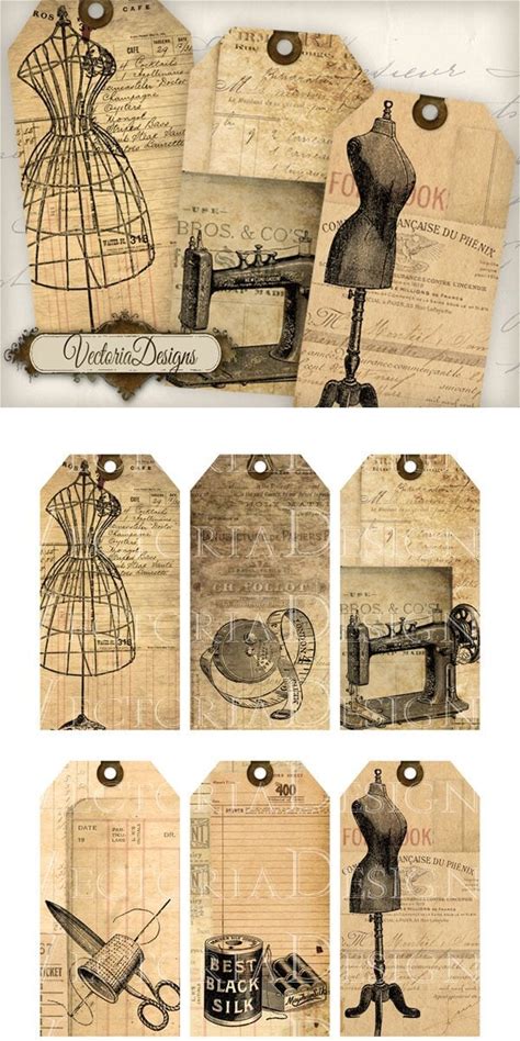 Printable Sewing Tags Shabby Printable Gift Tags Printable Crafting Digital Download Instant Download Digital Collage Sheet 000442
