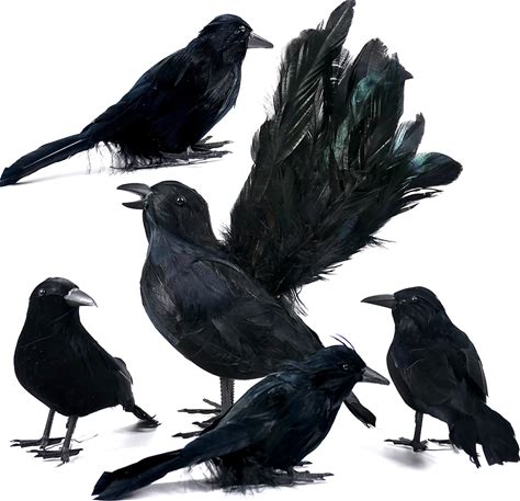 Orgrimmar 5 PCS Black Feather Crows Realistic Handmade Ravens Halloween Party Decor Props For Indoor Outdoor Decorations Birds (Black, 5 Packs)
