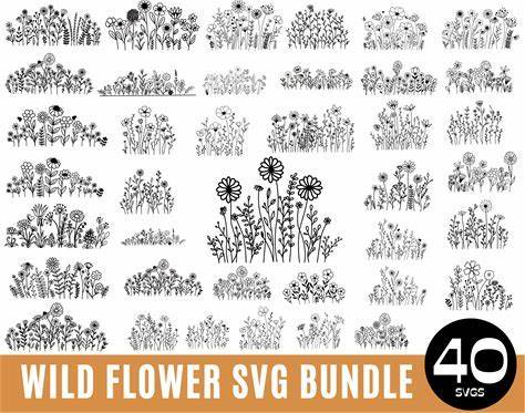40 Wildflowers Svg, Bouquet SVG, Floral Svg, Minimalist Svg, Nature Svg, Floral Frame Svg, Split Monogram Svg, Flower Sketch Svg
