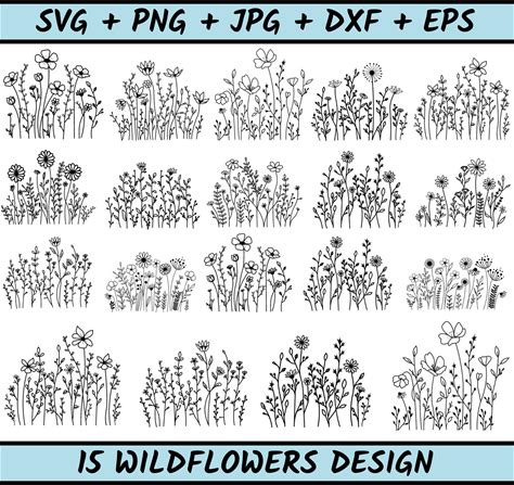 Bouquet SVG, Wildflowers Svg, Floral Svg, Flower Meadow Svg, Doodle Flower Svg, Flower Svg, Flower Svg Bundle, Floral Frame Svg, Floral Svg