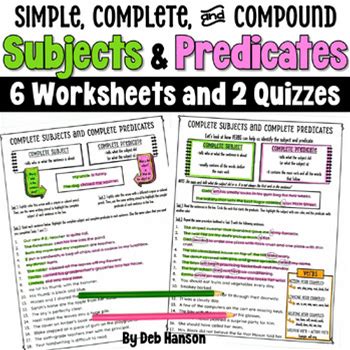 Subjects And Predicates Grammar Worksheets - Simple, Complete, And Compound