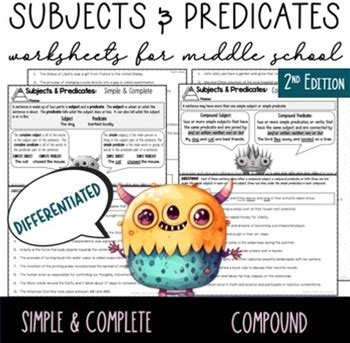 Subjects & Predicates: Simple & Complete Compound - Grammar Worksheets