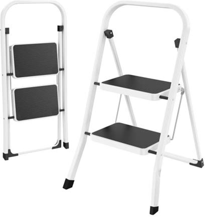 Homgarden 2-Step Foldable Ladder Non-Slip Steel Step Stool W/Handgrip & Wide Pedal Max350 Lbs White