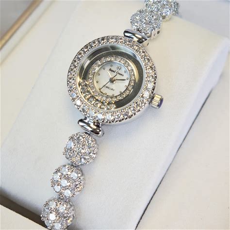 Vintage Style AA Grade Simulated Floating Diamond Bracelet Ladies Dress Watch
